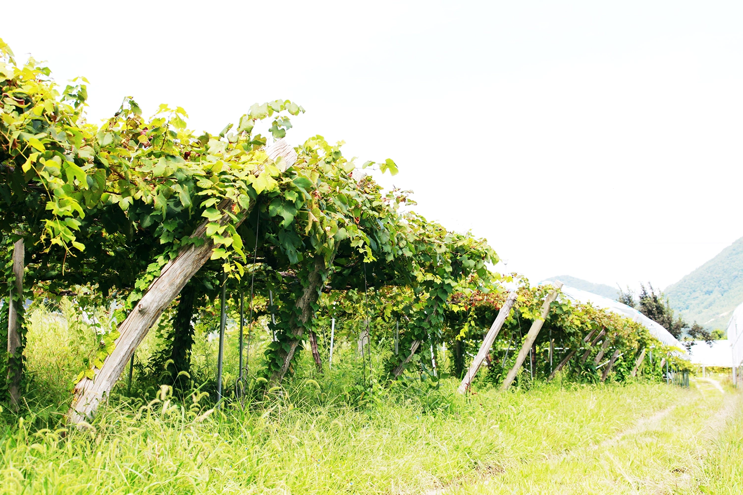 いにしえ様の自社農園のぶどう畑は、木陰が心地よく、草花が生い茂り、時にはカモシカも訪れる場所。